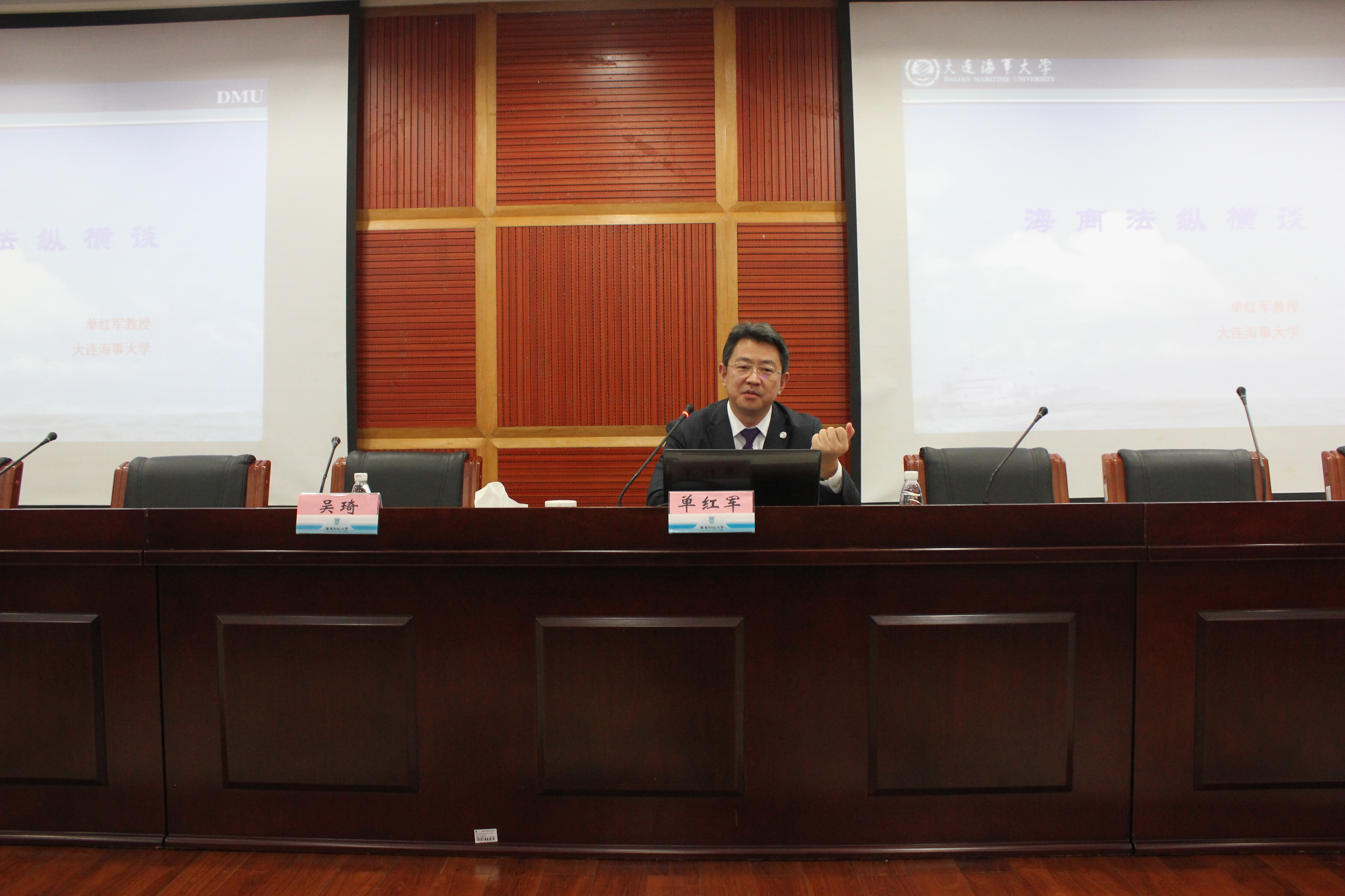 12月12日下午,“善水大讲坛”之“社会聚焦”讲座在佛山三水校区学术报告厅举行,大连海事大学副校长、博导单红军教授作“中国海商法纵横谈”讲座。校党委副书记吴琦主持讲座,校区党委副书记蔡楷有出席讲座。
