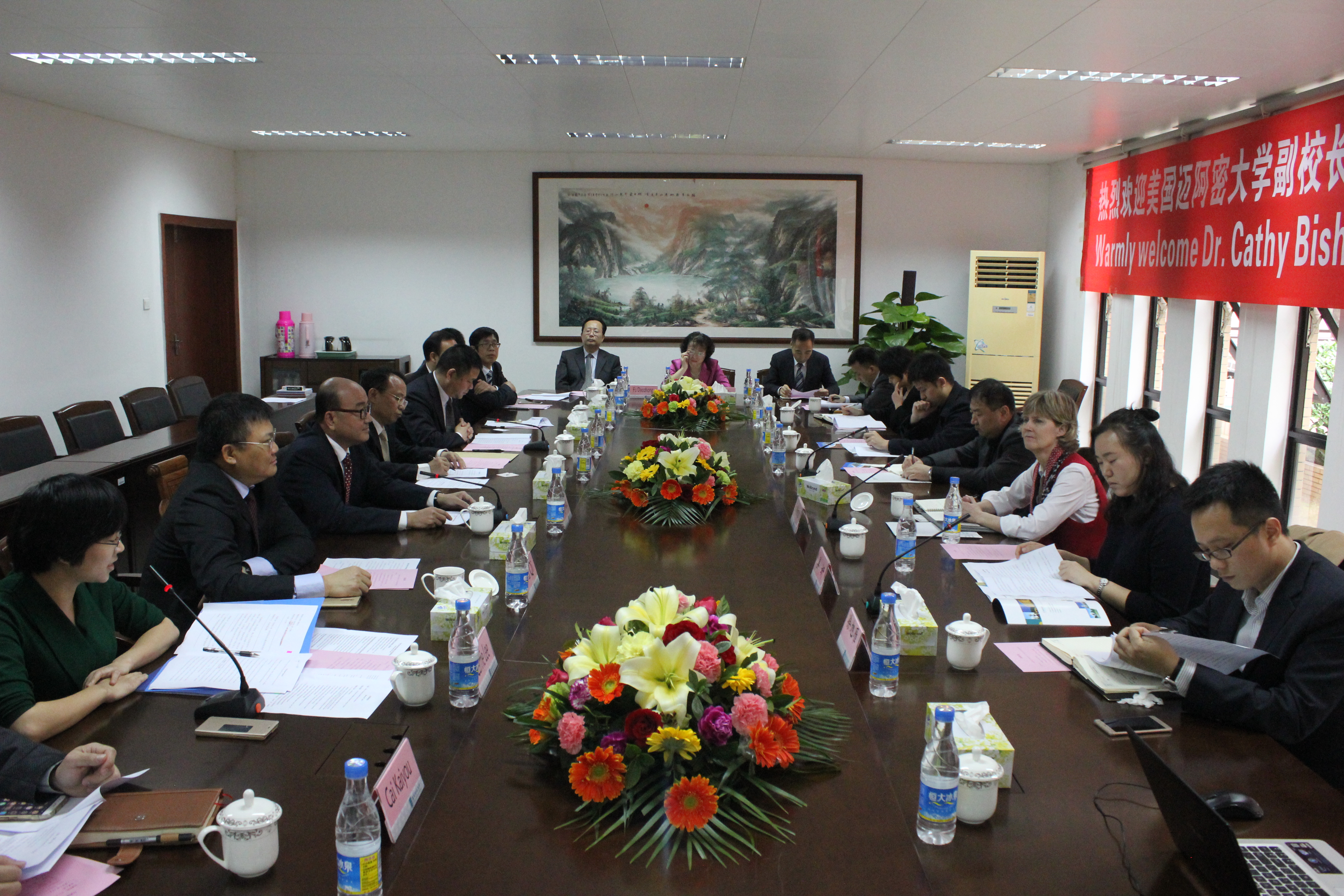 3月22日上午,美国迈阿密大学(Miami University)常务副校长Cathy Bishop-Clark一行四人访问我校佛山三水校区,校党委书记黄晓波、校长于海峰、校党委副书记吴琦、副校长杜承铭和佛山市教育局副局长徐旭雁等会见来宾。