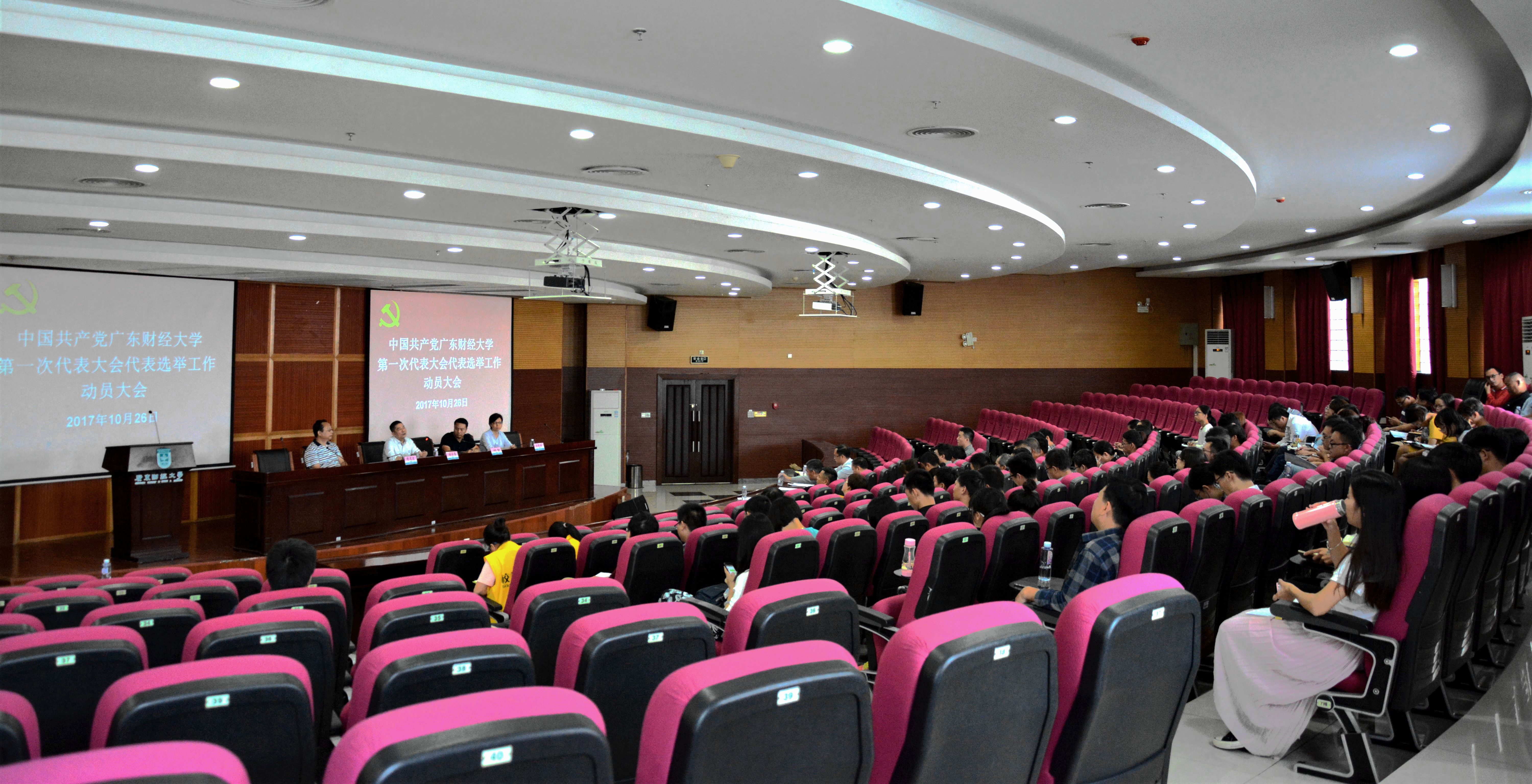 为推动中国共产党广东财经大学第一次代表大会代表选举、第一届党的委员会委员及纪律检查委员会委员推荐工作顺利开展,10月26日下午,佛山三水校区(以下简称“校区”)党委在校区图书馆学术报告厅举行了工作部署动员大会。校区党委书记谢访春、副书记钟智,校区管委会副主任傅道忠、江晓铃,以及校区全体党员出席会议,钟智主持会议。
