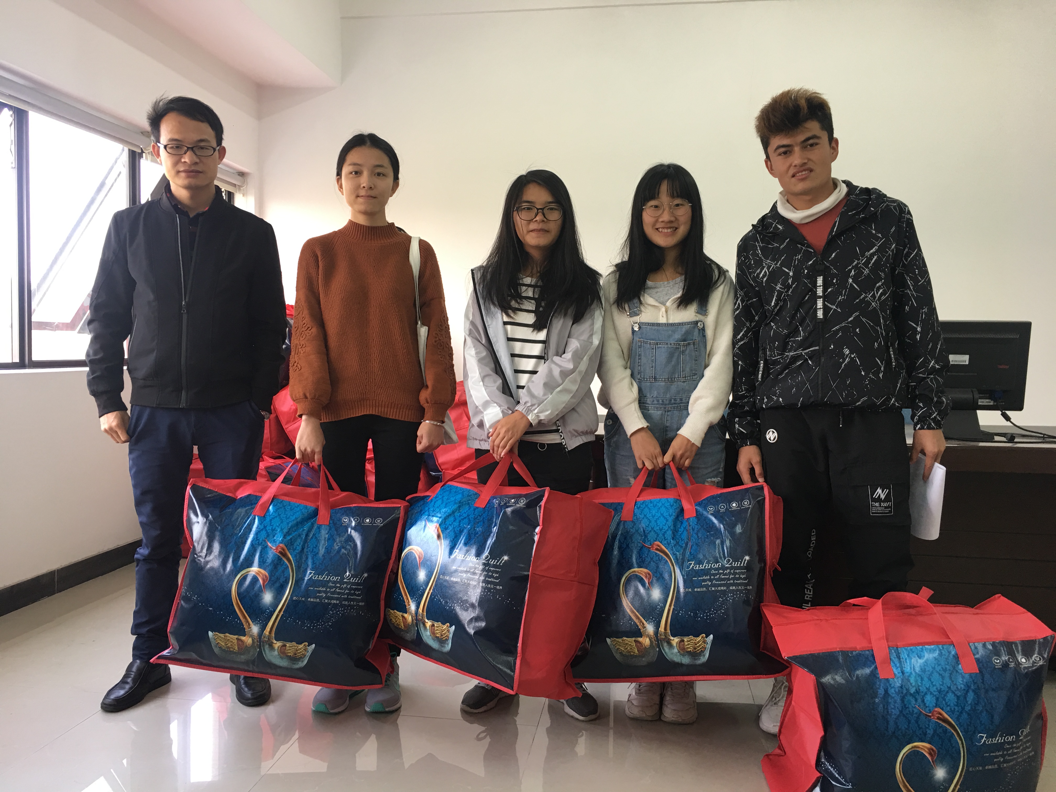 每年冬天,校区都会为家庭经济困难学生发放棉被,前期通过学院了解困难学生需求,本着切实解决实际困难的态度,通过学生亲自领取、辅导员和学工办进宿舍发放等方式,本次冬季送温暖活动共向357名同学发放棉被,总价值约7万余元。