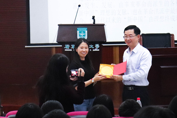 4月17日下午,广东中共党史学会常务理事、中山大学孙中山研究所副所长、历史系教授赵立彬作客善水大讲坛,与我校师生畅谈“百年风云与一个现代国家的产生”。我校人文与传播学院教师黄素娟与三百余名同学在佛山三水校区学术报告厅聆听了讲座。