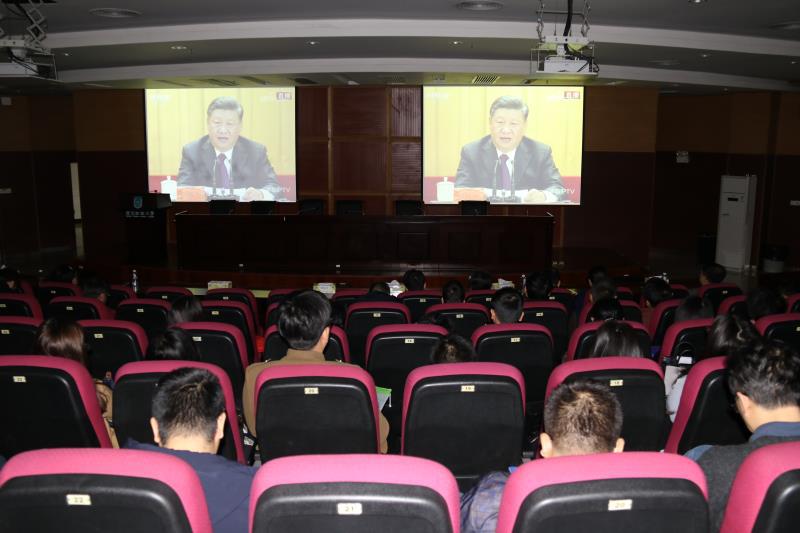 为深入学习贯彻习近平新时代中国特色社会主义思想,推动学校领导干部、师生员工进一步坚定马克思主义科学信仰、共产主义远大理想和中国特色社会主义共同理想,佛山三水校区党委组织校区中层干部,正科级干部(含主持工作的副科长),全体党支部书记,全体政治辅导员,组织员等人员于2018年12月18日上午10:00在图书馆学术报告厅观看庆祝改革开放40周年大会。