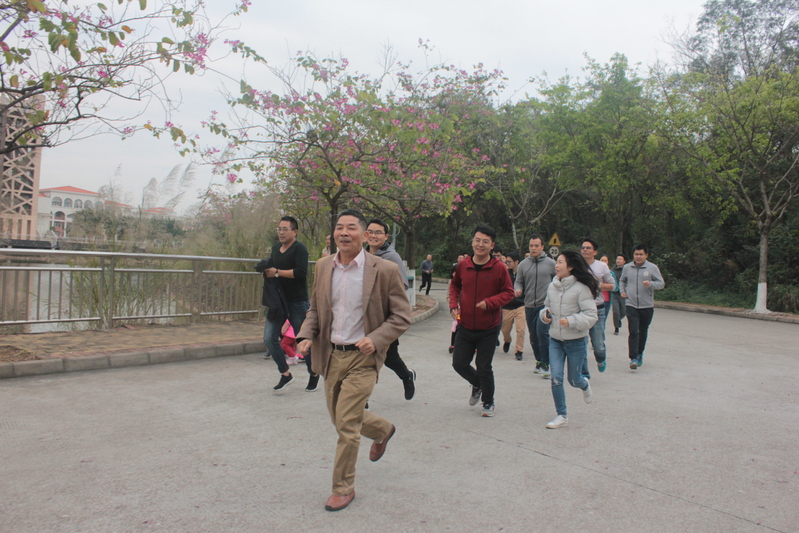 4:50,校区各学院、部门人员在校区东门集合完毕。首先,校区分工会主席钟智发表动员讲话,他首先代表校区分工会感谢校工会对校区教职工的慰问与关怀,以及对分工会工作的支持。同时,也感谢校区全体教职工一来年对工会工作的肯定与付出。随后,他倡导大家要热爱岗位,爱护身体,积极参加体育锻炼,秉承“我运动、我健康、我快乐”的理念来迎接暂新一年的到来。