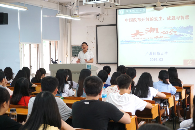 接着,谢访春联系历史,联系实际,详细生动地为学子们讲解了中国改革开放以来的成就与智慧。我国生产力得到大幅提升,人民生活不断改善,经济总量持续上升,在全球所占的份额也在不断提高。都表明我国经济在稳步前进。