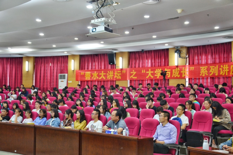 5月9日下午,2018-2019学年第十一期(总第101期)“善水大讲坛”之“大学与成长”系列讲座在佛山三水校区图书馆学术报告厅举行,华中科技大学徐顽强教授主讲,佛山三水校区管委会副主任傅道忠主持。