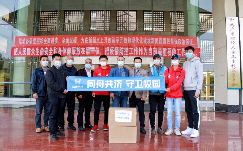 “同舟共济,守卫校园”,3月14日,哈啰出行向佛山三水校区捐赠1000个一次性医用外科口罩,校区党委副书记钟智代表校区接受了物资捐赠。