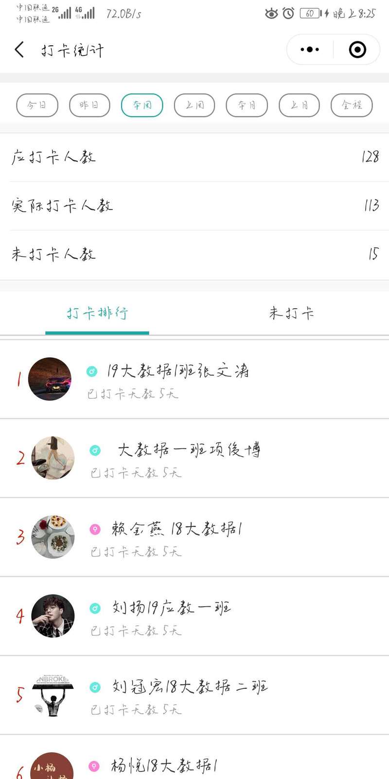 在疫情期间,“考研社”通过 “线上打卡”的形式,交替开展数学解题活动或英语学习活动。学生根据公布的数学题目,自行解题并将解题过程录下来,上传到“考研社”平台,分享解题思路,促进互相交流学习。英语学习则根据每次的主题,学生用英语表达自己的看法,以此训练英语表达能力。“小打卡”以网络小程序方式进行,“考研社”管理员在家里就可管理社团的学习活动,非常方便。“考研社”的同学认为“小打卡”形式能促进学习,克服惰性,参与度非常高,125名同学平均每天打卡率达到90%。。