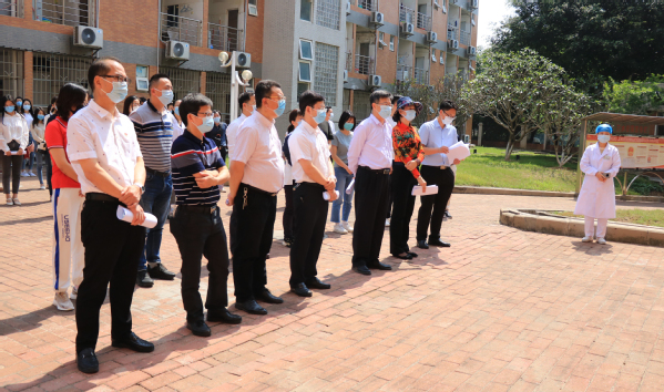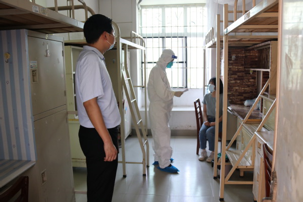 为防止新冠肺炎疫情输入和扩散,保障师生员工的生命安全和身体健康,维护学校校园安全稳定,4月29日下午,佛山三水校区(以下简称“校区”)开展了新冠肺炎疫情防控应急演练。学校党委副书记罗贤甲、副校长陈国栋,校区管委会班子成员、各部门负责人,国际商学院、文化创意与旅游学院分管学生工作相关领导,研究生分院负责人,校区全体辅导员及其他有关人员参加了演练。佛山市三水区教育局副局长罗嘉幸、卫生健康局副局长范子健、云东海教育局常务副局长陆广成、疾病预防控制中心副主任何永辉、卫生健康局派驻三水区人民医院纪委书记徐勇忠应邀参加。