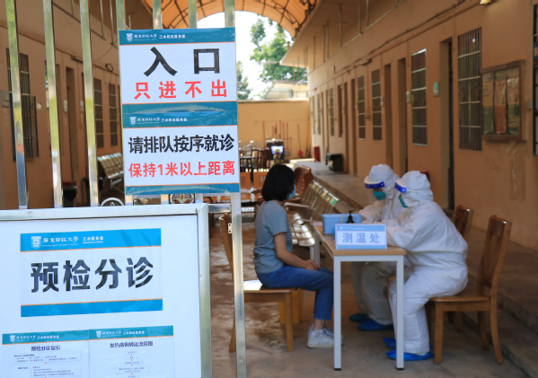 本次演练按照前期制定并多次讨论修改的演练方案紧张有序进行,以实战为标准,以真实为准则,严格按照演练流程进行:晨检发现体温异常学生,学生到医务室就诊,医务室根据学生有无接触史进行分诊,核酸检测阴性学生返校留观,健康观察区消毒。校区各个部门密切配合,各个环节精准安排,各个场景科学设置。