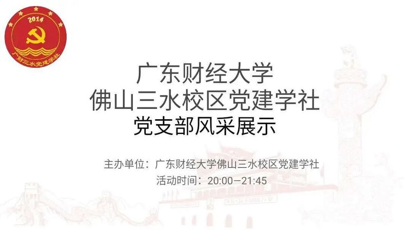 5月22日晚,由佛山三水校区党建学社主办的第三届党支部年度风采展示大会通过线上方式举行,校区党委十三个学院学生党支部积极参与展示。本次活动由黄东、王进、肖繁、罗志君、韩红梅5位老师担任评委,宋信强老师作为特别嘉宾参与大会,各学院学生党支部书记、学生党支部成员及积极分子代表约200人参加了活动。