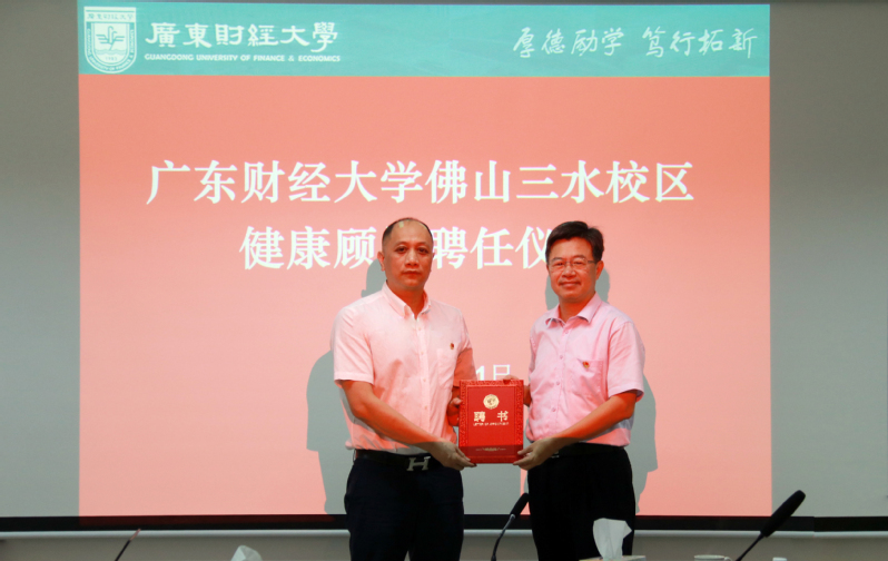 徐志明讲话。他指出,校区聘请健康顾问反映了广东财经大学佛山三水校区对公共卫生管理的高度重视,三水区人民医院将全力支持校区做好疫情防控工作。以本次深度合作为契机,未来双方在党建、管理服务技能等方面进一步合作与交流。