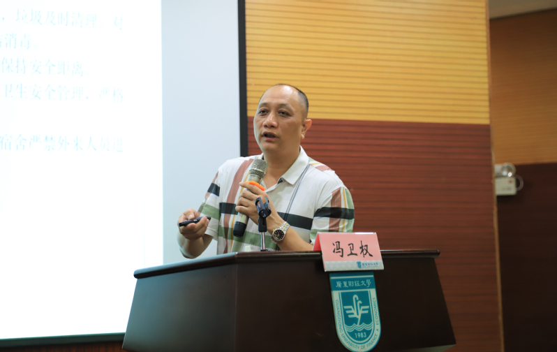 9月9日下午,佛山三水校区邀请校区健康顾问、三水区人民医院发热门诊冯卫权副主任医师到校区作讲座,为校区职工开展高校新冠肺炎防控策略培训,校区全体职工参加了培训,讲座由校区党委副书记钟智主持。