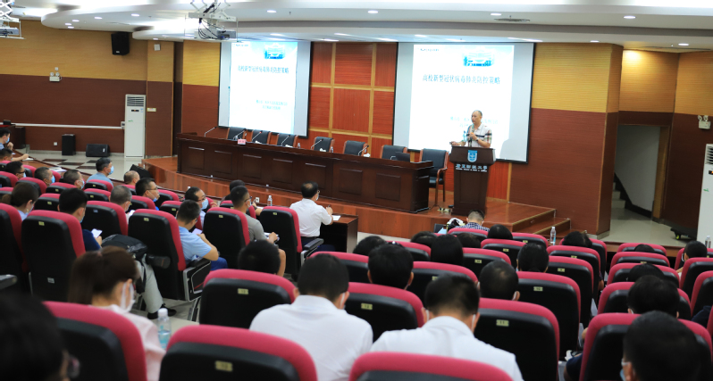 冯卫权分享了获得“共和国勋章”的钟南山院士及其他“人民英雄”为国抗疫的感人事迹,详细讲解了新冠肺炎及疫苗基础知识。他介绍了新冠肺炎的判断标准、临床表现、传播途径、有无症状感染者等分型标准;他重点详细讲解了新冠肺炎疫情防控策略,重点介绍了个人居家及公共场所防控手段。他强调,预防要从严格佩戴口罩、勤洗手做起,校区要做好教室等公共场所通风、学生错峰就餐、严格食品卫生检查、做好其他传染病预防等防控工作,加强学生监管、做好防控应急预案,进一步完善校区师生员工分级别、分类型、整体协同的防控网络。冯卫权还分享了其他学校的疫情防控经验。