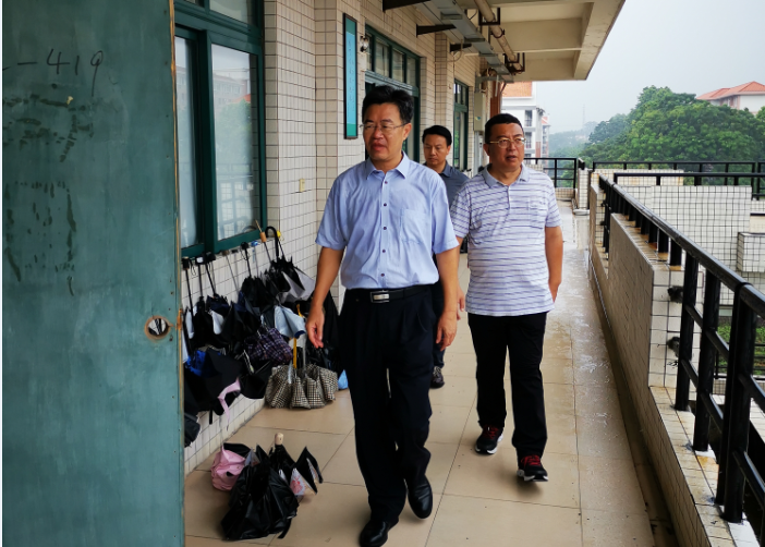 9月14日上午,佛山三水校区2019级学生、佛山校区全学段学生第一天上课,2020级学生开始新生入学教育。副校长陈国栋到校区检查课堂教学秩序情况,校区管委会领导及相关部门负责人陪同。