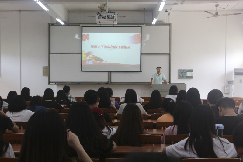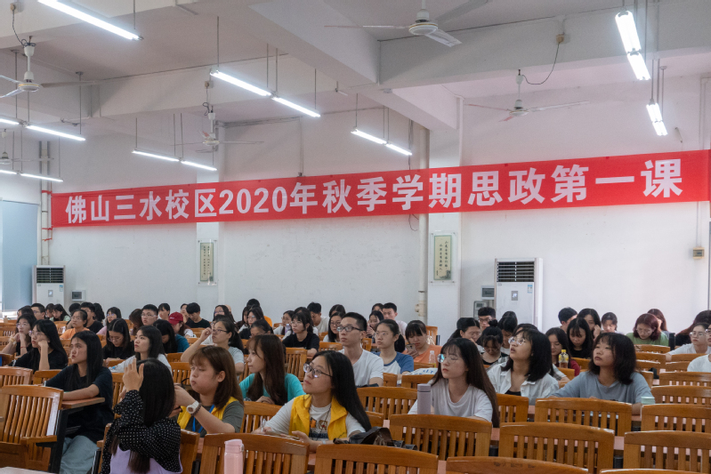 9月29日下午,佛山三水校区举行2020年秋季学期思政第一课,由校区党委副书记钟智为大家讲授“战役之下青年的责任和担当”,各学院、学生组织的学生干部等共同聆听课程内容。