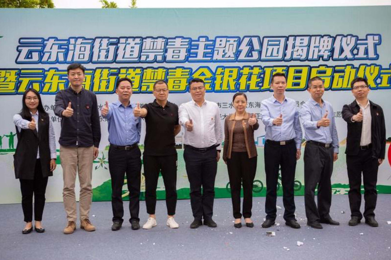 在佛山市创建全国禁毒工作示范城市迎来验收之际,三水区云东海街道首个禁毒主题公园也随之建设完成。10月24日上午,云东海街道禁毒委员会在禁毒主题公园举行了揭牌仪式,也借此机会,正式启动了云东海特色禁毒项目——云东海禁毒金银花。广东财经大学佛山校区团工委、云东海街道禁毒工作挂钩单位佛山市医疗保障局、市医疗保障局三水分局,三水区禁毒委员会、云东海街道禁毒委员会等相关领导出席了本次活动。