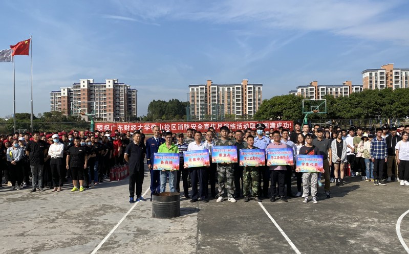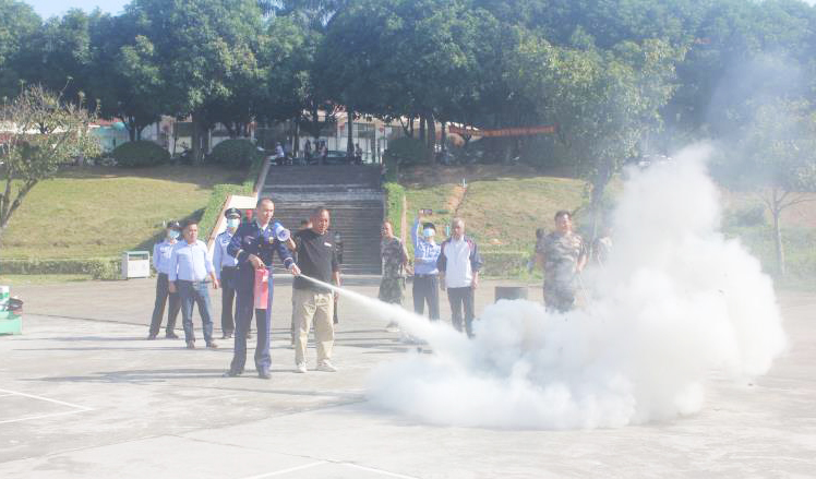 学员进行模拟演练11月10日下午,佛山校区保卫办、学工办、饮食中心、研究生分院及各商铺等相关人员在校区篮球场举行消防安全宣传月演练活动,校区党委常务副书记、管委会常务副主任冯东海,管委会副主任陈镇恭出席活动,活动由校区保卫办主任方彤彤主持。陈镇恭作活动动员讲话,冯东海宣布活动开始。