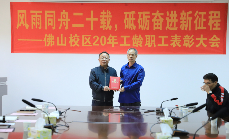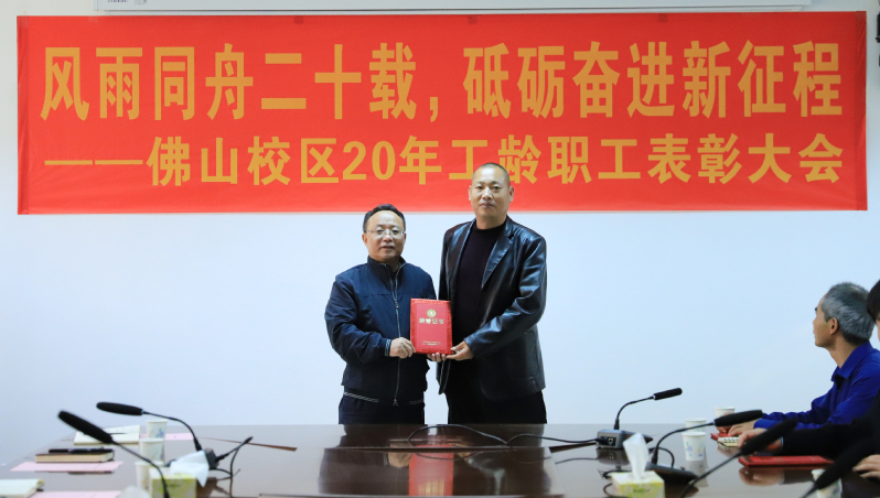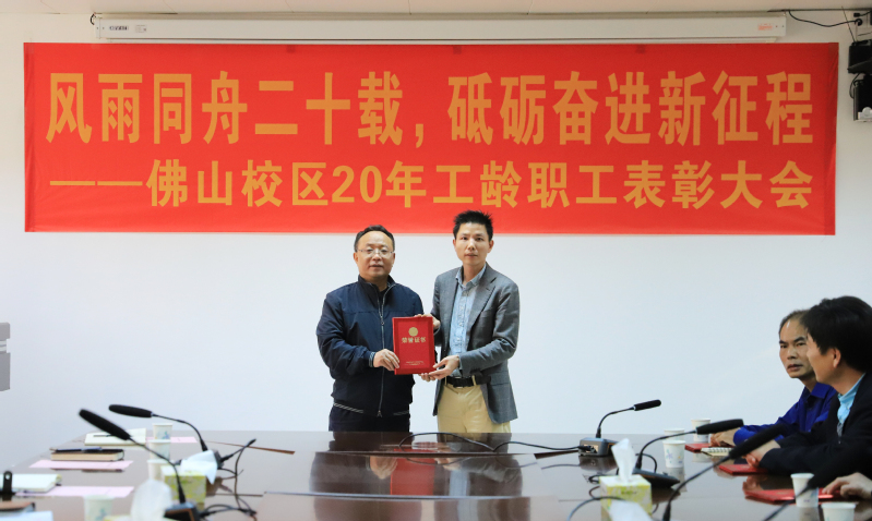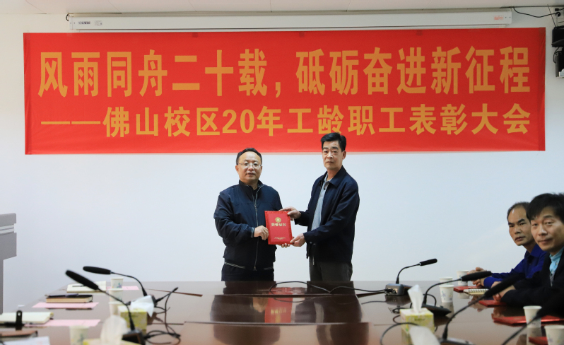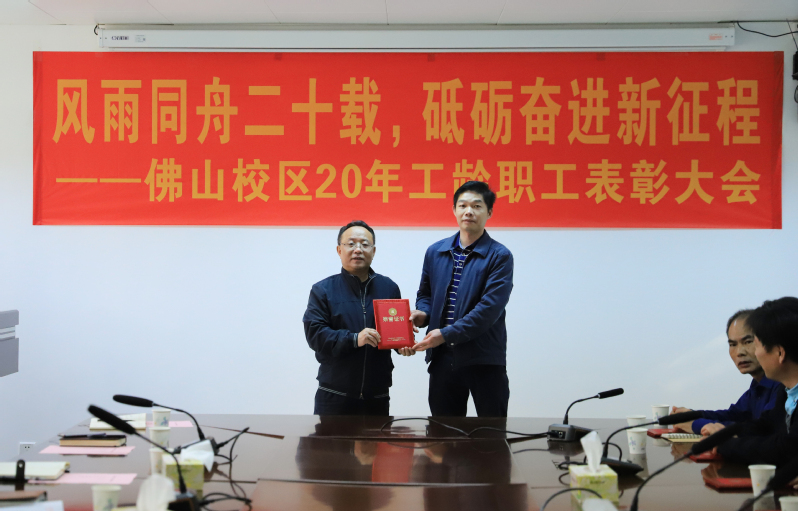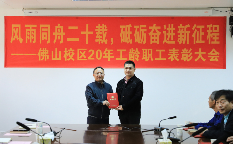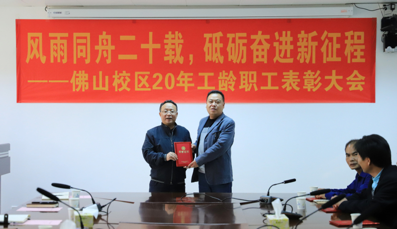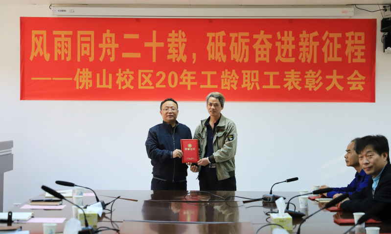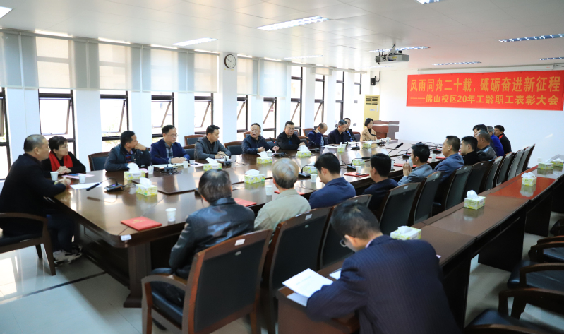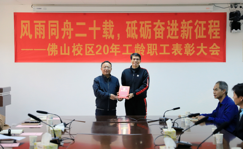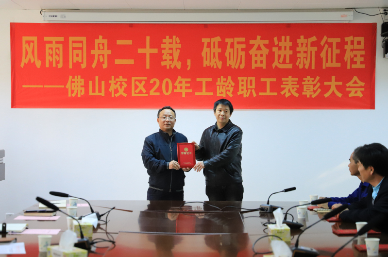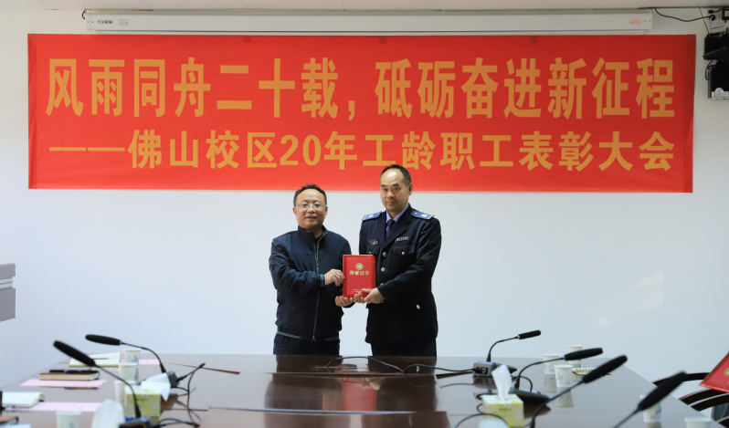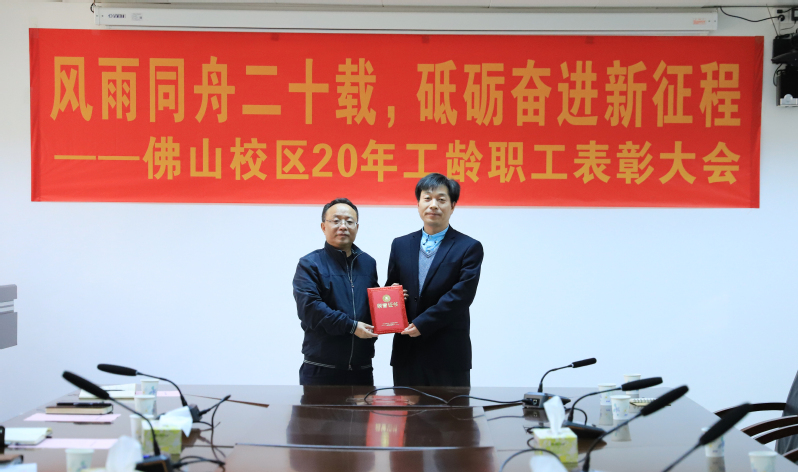 1月25日上午,佛山校区二十年工龄职工表彰大会在校区第一会议室举行,校长于海峰出席会议,校区党委常务副书记、管委会常务副主任冯东海主持会议。校区管委会领导、各部门负责人及受表彰人员参加会议。