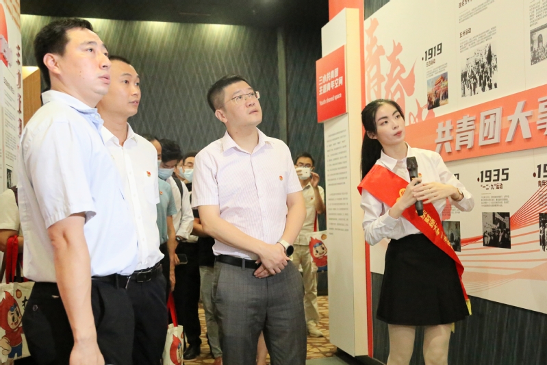 启用仪式结束后,领导和嘉宾们在我校“五向青年”志愿宣讲队成员的指引、讲解下参观了青年空间。该空间是集共青团历史发展沿革、实物陈列、各年代青年主题电影展及青年共享活动空间于一体的青少年思想教育阵地,也是佛山市第一个共青团主题的青年空间。