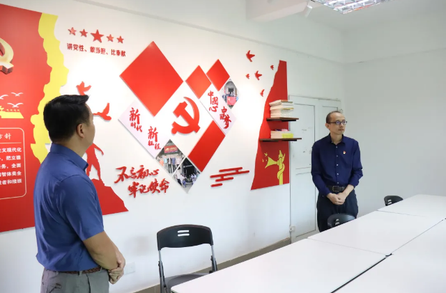 揭牌仪式后,各位嘉宾参观了教师党支部工作室。