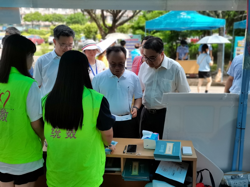 当天,校领导参观了位于在佛山校区杏园园区的统数迎新大本营,对大本营的美观设计、新颖创造表示了肯定。校党委书记郑贤操向统数迎新大本营的工作人员仔细询问了新生报到情况和迎新流程,对统数学院的迎新工作给予肯定;于海峰校长视察了统数迎新大本营的准备工作,表示学院的迎新布置有特色、有创意;陈国栋副校长、佛山校区管委会王伟主任对统数学院的迎新工作给予了指导和建议。学工部部长苏明华、研究生院院长谢雄伟、校团委书记张鹏程等学校各部门负责人陪同校领导参观和视察了统数学院迎新大本营。