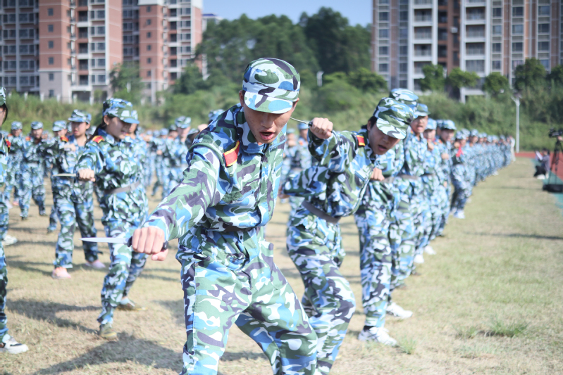 军训团团长伍灶彪讲话。伍灶彪引用习近平总书记对青年人的寄语,希望同学们把军训中培养和展现出来的好思想、好作风、好精神融入个人血脉,带到今后的学习中去,打牢知识基础,为人生的精彩再谱新篇,为实现中华民族伟大复兴的强国梦、强军梦作出积极贡献。