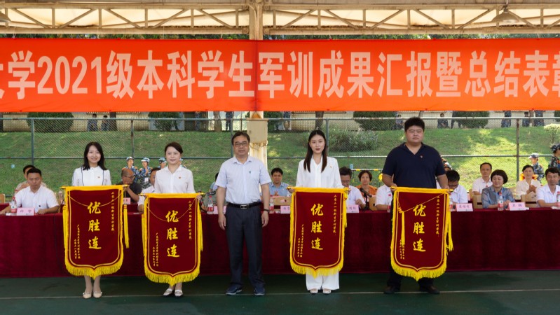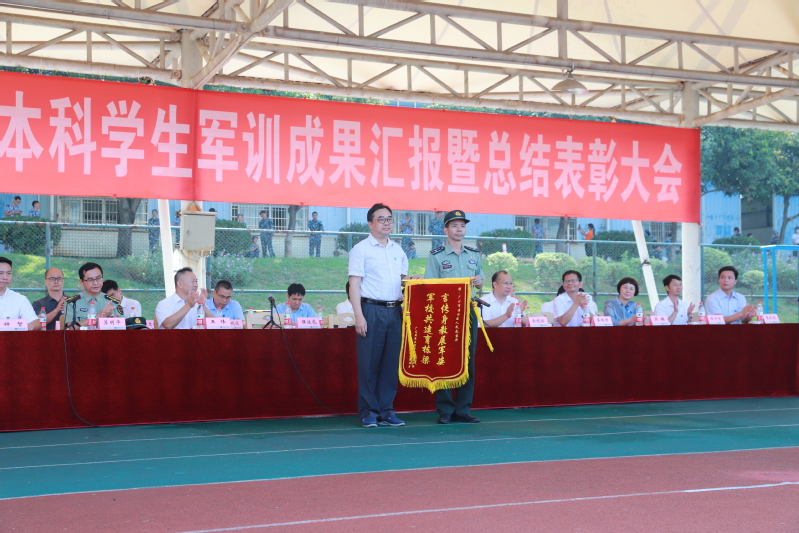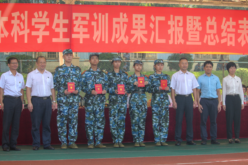 军训成果汇报表演结束后,苏明华宣读嘉奖令,对军训过程中表现优秀的集体和个人进行表彰。党办校办主任余晓征、武装部部长苏明华、保卫部部长蔡楷有、佛山校区管委会主任王伟、教务处副处长陈发健、校团委副书记张琦为军训先进个人代表颁奖;副校长陈国栋、军训团团长伍灶彪为军训优胜排获奖单位颁奖;校党委书记郑贤操为获得“军训优胜连”的4个学院颁奖。
