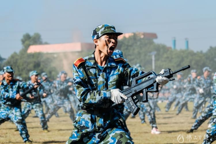 新生们通过军训的磨砺,尽显健儿英姿。/佛山日报记者王伟楠制作