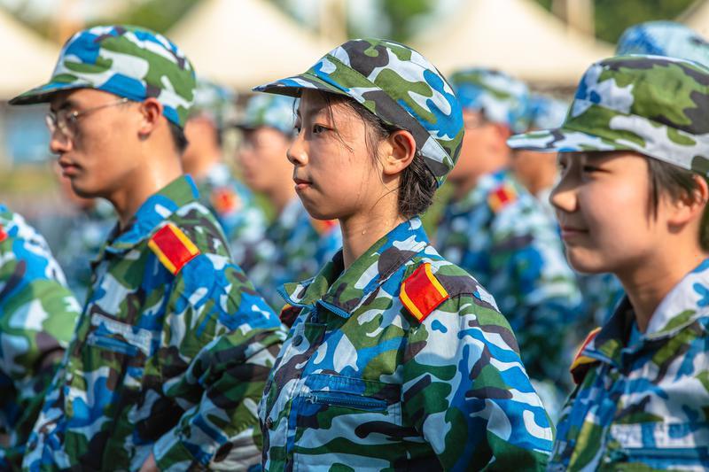 2021年9月18日,广东财经大学佛山校区2021级新生们正在站军姿(摄影:王澍)