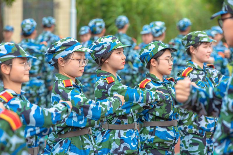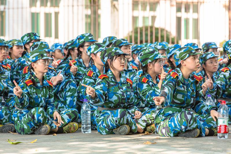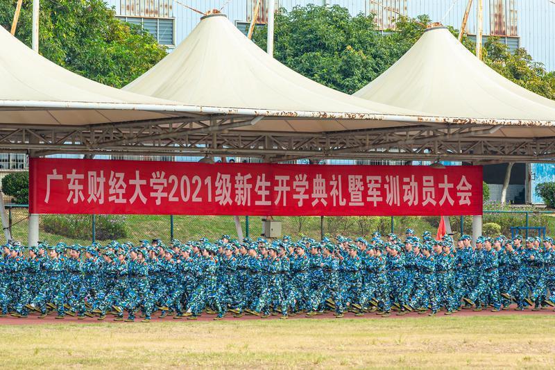 2021年9月18日,广东财经大学佛山校区2021级新生正在军训(摄影:王澍)