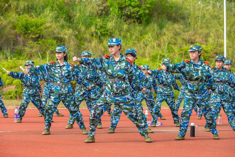 广东财经大学佛山校区2021级新生正在联系女子防身术(摄影:王澍)