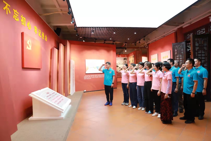 肇庆市阅江楼为叶挺独立团团部旧址,第一次国共合作期间,中国共产党组建并直接领导、掌握的第一支革命武装——国民革命第四军独立团的诞生地。全体党员先后参观了崇文阁和叶挺独立团史迹陈列馆,大家通过现场战争简介、图片资料、场景模拟、实物资料、革命文物等,详细了解叶挺独立团的光辉战斗历程,被革命先烈不怕艰辛、顽强斗争、敢于牺牲、作风俭朴的“铁军”精神所鼓舞。参观活动结束后,佛山校区管委会副主任田辉带领全体党员在陈列馆“初心堂”大厅,面向庄严的党旗和党员徽章,重温入党誓词。全体党员精神抖擞,庄严肃穆,誓词声声,铿锵有力,充分表达了中共党员永葆初心、砥砺前行的坚定信念和伟大决心。