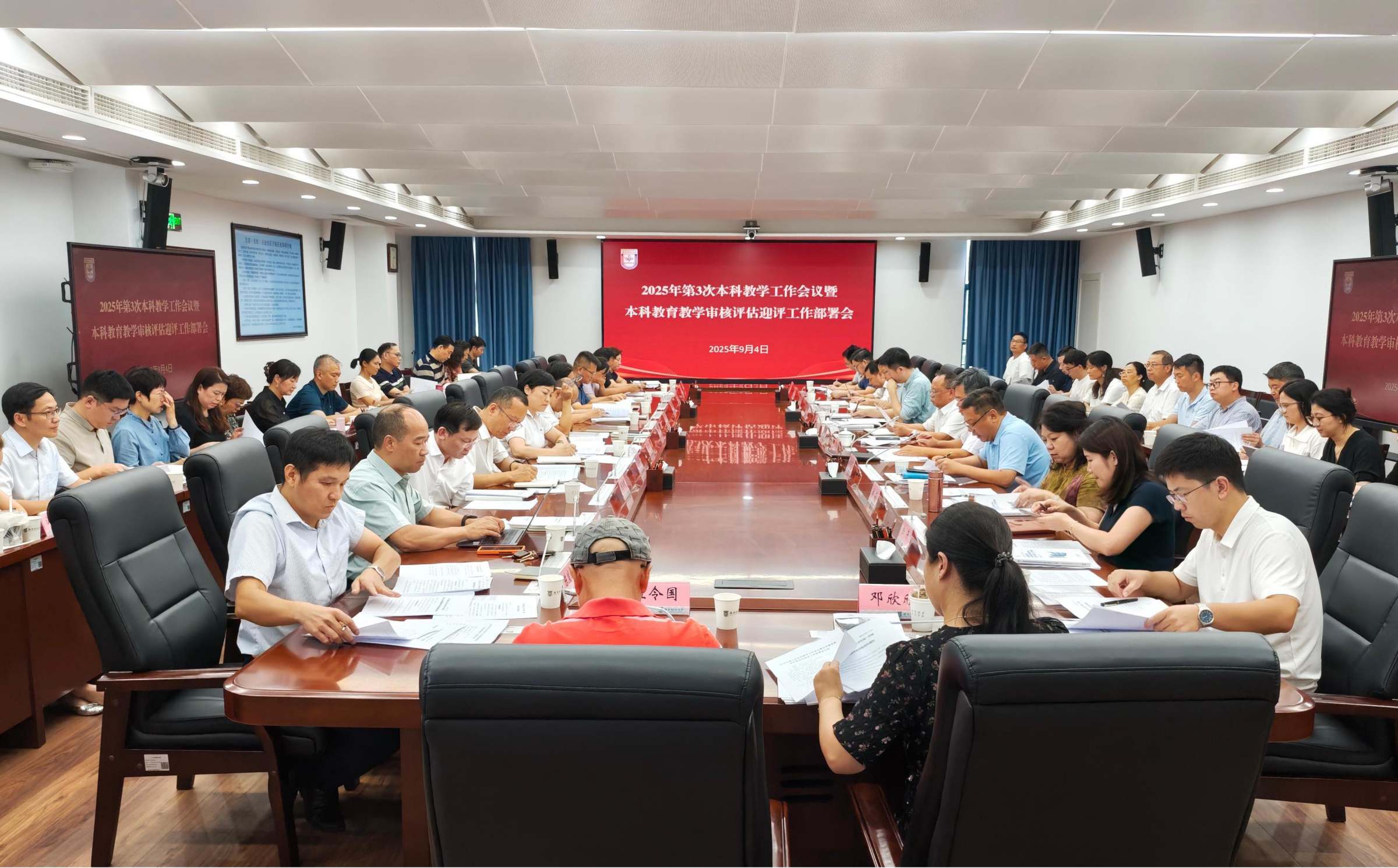9月4日下午,2025年第3次本科教学工作会议暨本科教育教学审核评估迎评工作部署会议在同德楼第一会议室召开。校长于海峰、副校长陈国栋,各教学单位主管教学负责人、相关职能部门负责人、校教学督导组等参加会议。副校长陈国栋主持会议。