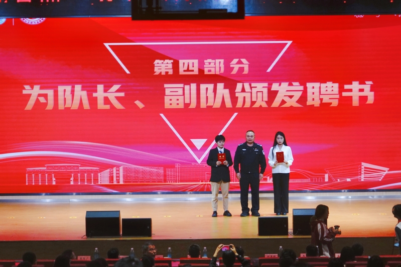 黎浩光在讲话中充分肯定了“红石榴”安全宣传志愿服务队在校园反诈、消防安全、交通安全等领域发挥的积极作用,强调校地联动是提升校园安全治理效能的关键。黎浩光表示,佛山市公安局三水分局将持续为志愿服务队提供专业支持,通过开展专题培训、共享宣传资源等方式,助力队员提升安全宣传专业能力,希望双方以此次大会为契机,深化合作、携手共进,共同筑牢校园安全防线。