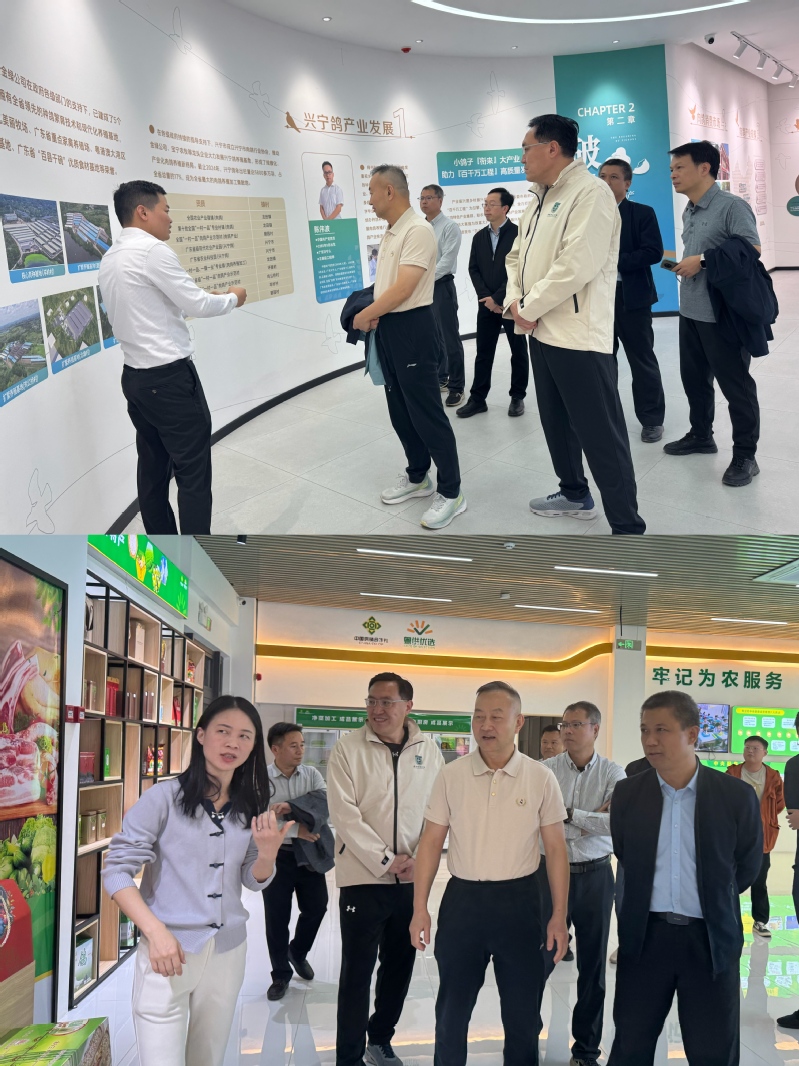 随后,调研组来到叶塘镇走访金绿公司,重点调研当地特色产业“兴宁鸽”的发展情况。企业负责人介绍了龙头企业如何带动农民增收、吸引大学生参与乡村产业创新的实践经验。双方就农村实用人才培养、乡村产业品牌打造、校企协同育人等合作方向交换了意见。调研组还走访了兴宁新供销农产品公司,调研农产品销售推广与供应链保障工作。