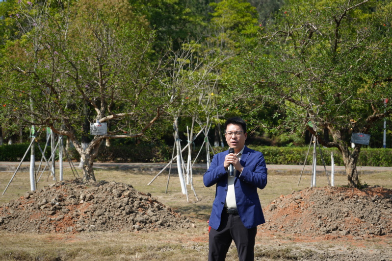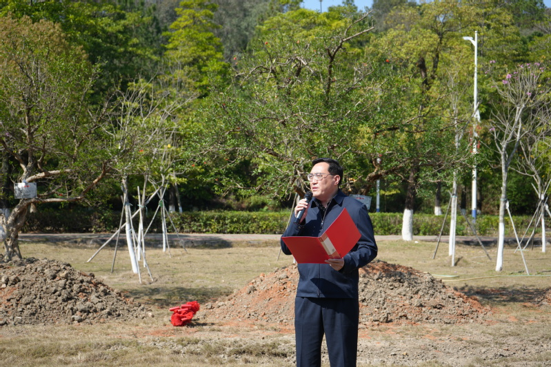 佛山校区党委书记刘大鹏致辞。他向会计学院校友致以诚挚的谢意。他指出,学校的发展凝结着广大校友的深情与支持,今天种下的石榴树是佛山校区的首批石榴树,寓意“榴园精神”在佛山校区传承发展。