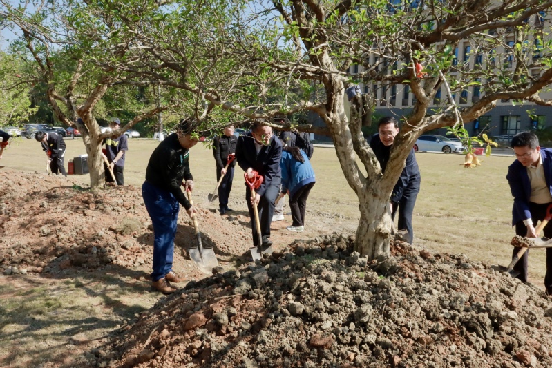 植树环节,大家共同种下4棵石榴树,共同祝愿石榴树茁壮成长、根深叶茂、花繁果盛!期待师生和校友与母校团结奋斗、同心同德、凝心聚力,在建设大湾区一流财经大学的新征程中书写高质量发展新篇章。